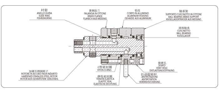 · 密封結(jié)構(gòu)是通過徑向的環(huán)形滑座和O型密封環(huán)組合來實現(xiàn)。 · 氟橡膠O型圈提供靜態(tài)密封,環(huán)形滑座提供動態(tài)密封。 · 抗氧化腐蝕材料應(yīng)用。 · 此多通路旋轉(zhuǎn)接頭密封結(jié)構(gòu)所產(chǎn)生的摩擦力很小,延長使用壽命。 · 抗腐蝕的密封裝置,可延長使用壽命。 · 可提供BSPT、BSP、UNF-NPT等螺紋連接方式。 · 減少了對金屬軟管及連接件的操作應(yīng)力。 · 其結(jié)構(gòu)設(shè)計簡單,方便裝配及拆卸。 · 轉(zhuǎn)子經(jīng)過表面硬化的工藝并經(jīng)過研磨的不銹鋼制成,可承受輕微的摩擦磨損。 · 殼體由四部分組成,用六只螺絲固定,便于調(diào)節(jié)預(yù)緊力和旋轉(zhuǎn)接頭維修維護。 · 兩個大襯套通過長距離安裝固定,可保證穩(wěn)定的同軸度和避免欠對準(zhǔn)的情況。 · 非標(biāo)產(chǎn)品可根據(jù)客戶提供的技術(shù)參數(shù)和工況環(huán)境設(shè)計生產(chǎn)非標(biāo)高速旋轉(zhuǎn)接頭。 |