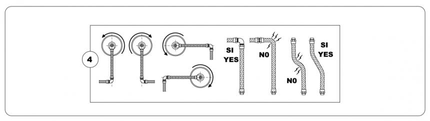 旋轉(zhuǎn)接頭左右如何區(qū)分及正確安裝安裝金屬軟管呢,旋轉(zhuǎn)接頭使用螺紋連接方式時(shí),螺紋需要根據(jù)設(shè)備的旋轉(zhuǎn)方向確定旋轉(zhuǎn)接頭軸端連接螺紋是正絲還是反絲,以避免因?yàn)樾D(zhuǎn)方向的問題造成螺紋退絲的現(xiàn)象發(fā)生。面對(duì)設(shè)備判斷設(shè)備的旋轉(zhuǎn)方向,設(shè)備向右旋轉(zhuǎn)時(shí)需要旋選擇右旋的旋轉(zhuǎn)接頭,既螺紋為正絲;用打字字母R表示;設(shè)備向左旋轉(zhuǎn)時(shí)需要選擇左旋的旋轉(zhuǎn)接頭,既螺紋為反絲,用大寫字母L表示。下圖中示例3為相應(yīng)旋向的旋轉(zhuǎn)接頭金屬軟管連接方式,減小金屬軟管的拉緊力對(duì)旋轉(zhuǎn)接頭產(chǎn)生的應(yīng)力。嚴(yán)禁使用硬管連接,或金屬軟管發(fā)生扭曲、變型、纏繞等情況等發(fā)生,如在狹小的空間里需要對(duì)金屬軟管大角度彎曲時(shí)間,需要采用45度或90度彎頭兩根軟管連接,防止金屬軟管對(duì)旋轉(zhuǎn)接頭產(chǎn)生不必要的應(yīng)力;詳見下圖中示例4中所示。