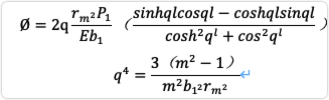承受內(nèi)壓的補償環(huán)向外變形呈現(xiàn)圓錐形,因為在內(nèi)徑d處接觸。如果它承受外壓則向內(nèi)變形,呈收縮錐形,在外徑D處接觸。對于一端固定,另一端是自由的中空圓筒,在靜水壓力P1作用下比澤諾(Biezeno)和格拉梅爾(Gram-mel)給出了它的微分方成時和它們的解。經(jīng)變換推導密封的變形為: